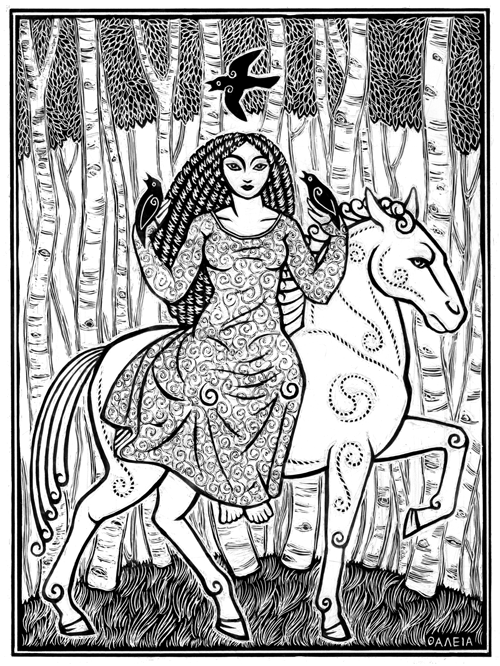La reina abre los ojos muy lento, todavía agotada por los dolores del reciente parto. Mientras recobra la consciencia nota la humedad en sus ropas, el olor a metal invade su olfato con una violenta oleada. Los gritos de sus criadas la traen de golpe a la realidad. Palpa el lecho: su bebé no está. «Se lo comió», se escucha. Las mujeres le acusan de haber devorado al príncipe en un arranque monstruoso a media noche. «¿Qué más se podría esperar de alguien que no es humana?». La reina tiembla de miedo y furia, los guardias entran en la habitación para llevarla arrastrando ante el rey. Esa es una de las imágenes que marcó mi infancia. Pertenece a la leyenda galesa de Rhiannon, una de mis favoritas.