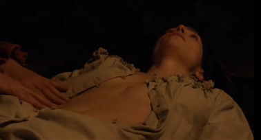En dicha secuencia vemos a Mary acompañada de su sirvienta Tituba, quien la guía a través del rito que implica su alianza con el demonio, incitándola a reafirmar el deseo por el que Mary ha resuelto entregar su alma y, mientras esto pasa, su cuerpo se cubre de alimañas al tiempo que las raíces de los árboles cercanos la toman por las piernas. Sabemos que el Diablo ha aceptado su oferta porque su vientre está vacío, lo que indica que tanto el nonato como su fertilidad fueron cedidas, marcando así la pauta del episodio y dándonos una idea de lo que vamos a encontrar a lo largo de la serie.