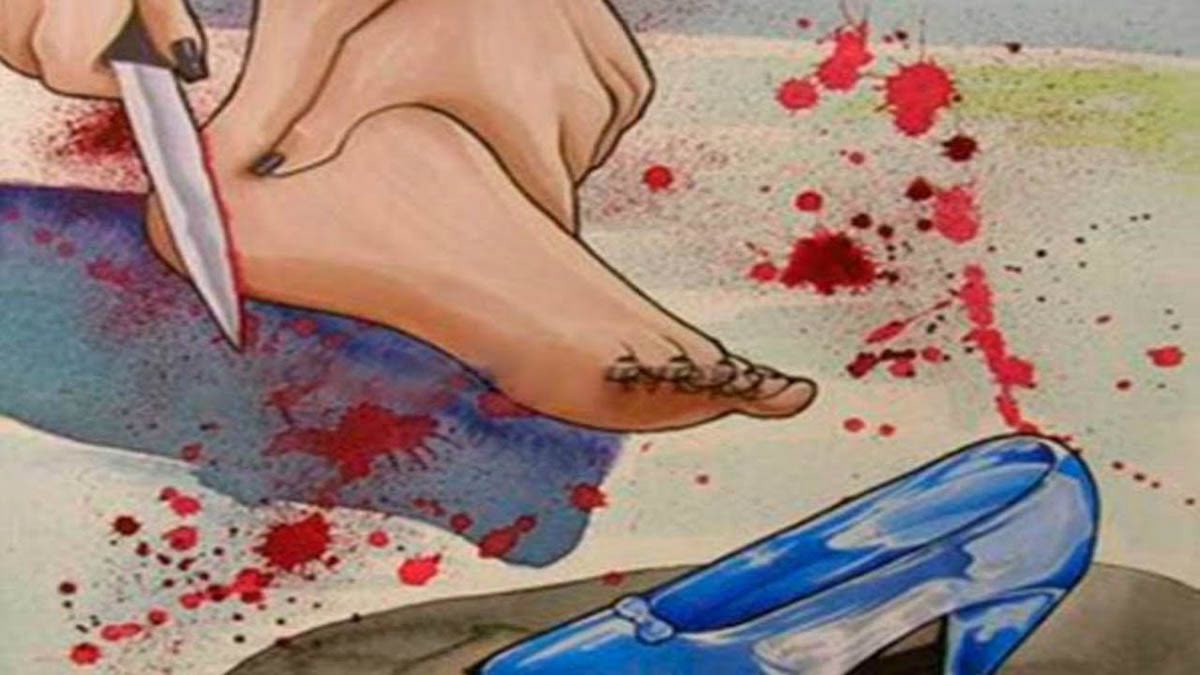 El dedo gordo le cabía, pero el talón era demasiado grande. La madre le alcanzó un cuchillo y dijo: