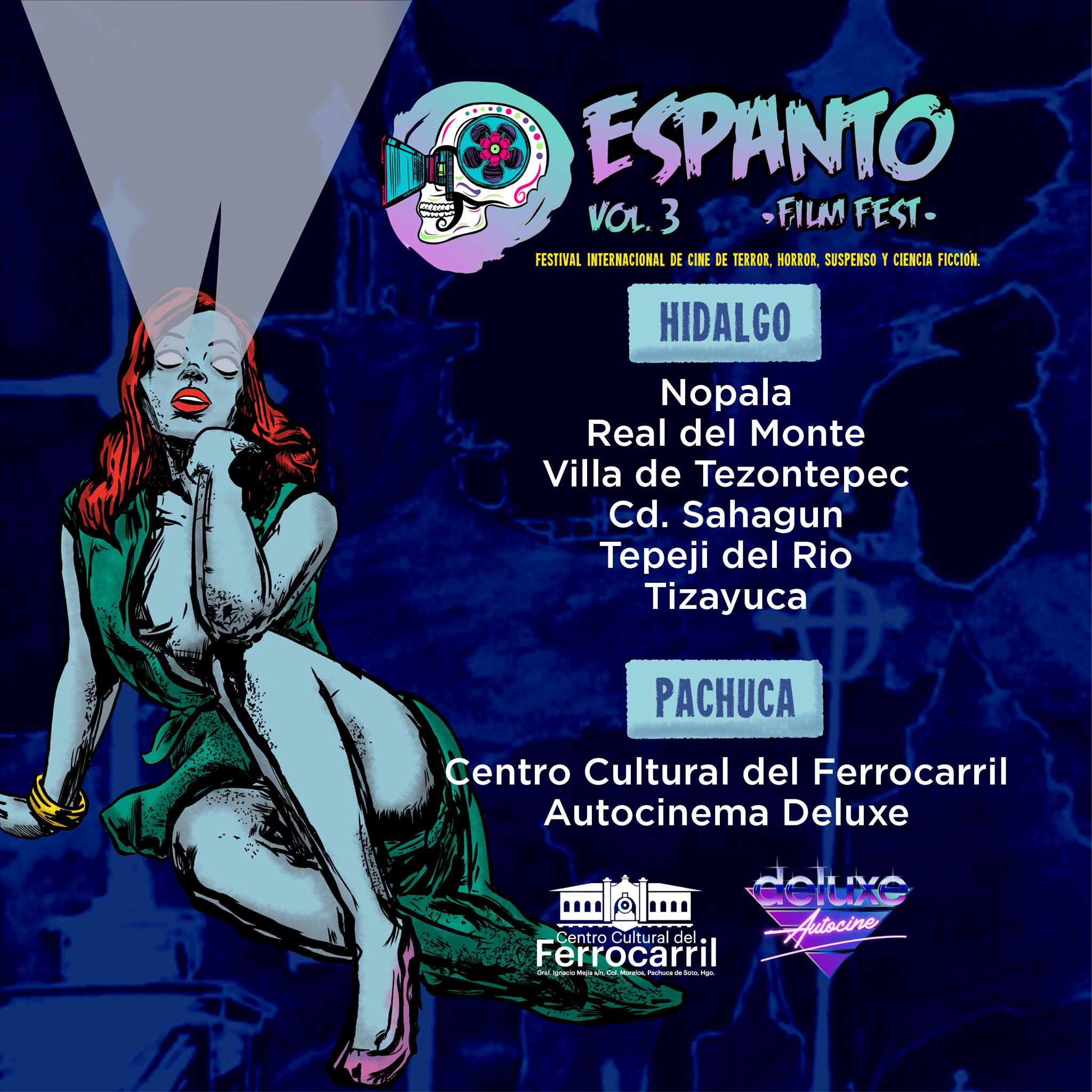 Las sedes presenciales serán en los municipios de Nopala, Real del Monte, Villa de Tezontepec, Tepeji, Tizayuca y Cd. Sahagún. En la capital del estado, Pachuca, se llevará a cabo en el Centro Cultural del Ferrocarril y en el Autocinema Deluxe.