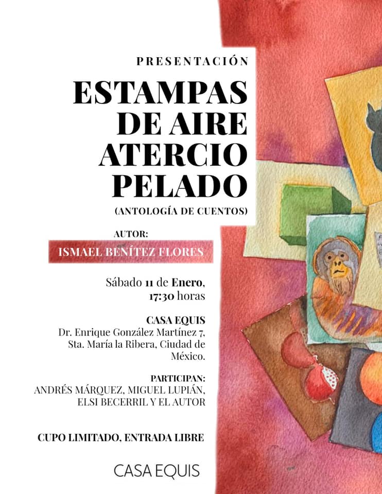 Tal vez no lo sepan, pero valoro muchísimo cuando me invitan a presentar libros; y el primero del año fue Estampas de aire aterciopelado, colección de cuentos breves de Ismael Benítez Flores.