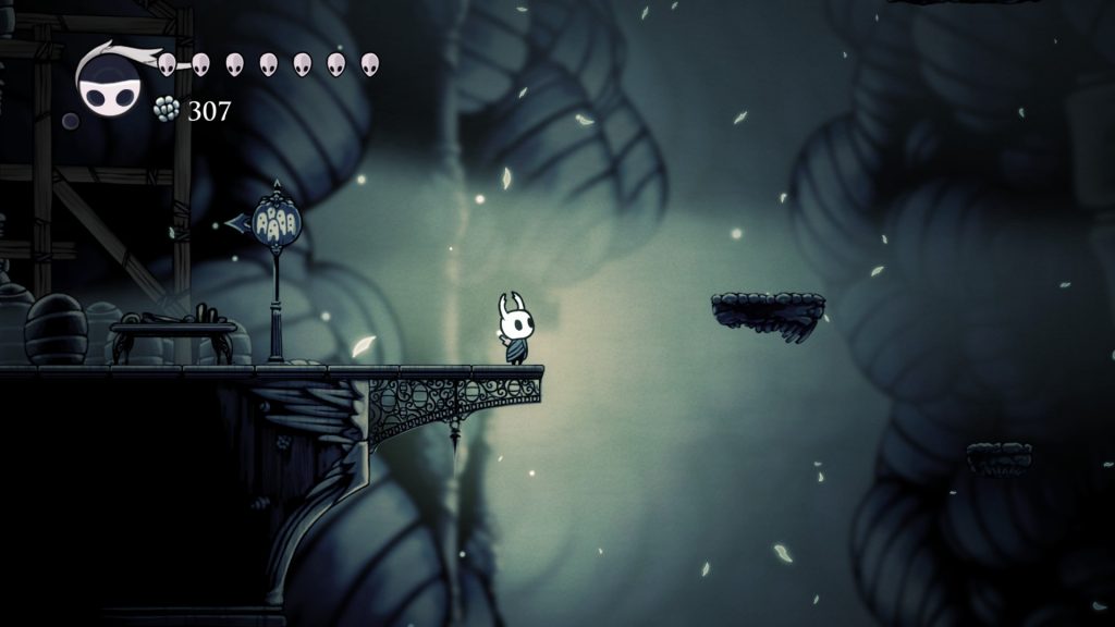 A medida que descendemos conocemos mejor el reino de Hallownest. Hay monolitos que nos hablan de lo que fue. Hay personajes que nos comentan sus impresiones y comparten su conocimiento, de lo distinto que se siente ahora en la decadencia. Se aclaran las situaciones y se alimentan las razones. Por una parte, está el sentido de la lógica. Lo vemos en la Ciudad de Lágrimas, construida para ser la capital y el corazón de Hallownest. Lleva ese nombre porque la ciudad está en una constante lluvia melancólica. Pero estamos abajo, en el suelo, ¿entonces de dónde sale esta lluvia? Si exploramos, descubrimos que el agua viene de una capa superior. Arriba de la ciudad yace un lago subterráneo y sus gotas se filtran entre las rocas. De toda aquella inmensa vida recibimos sólo fragmentos, a cuentagotas.