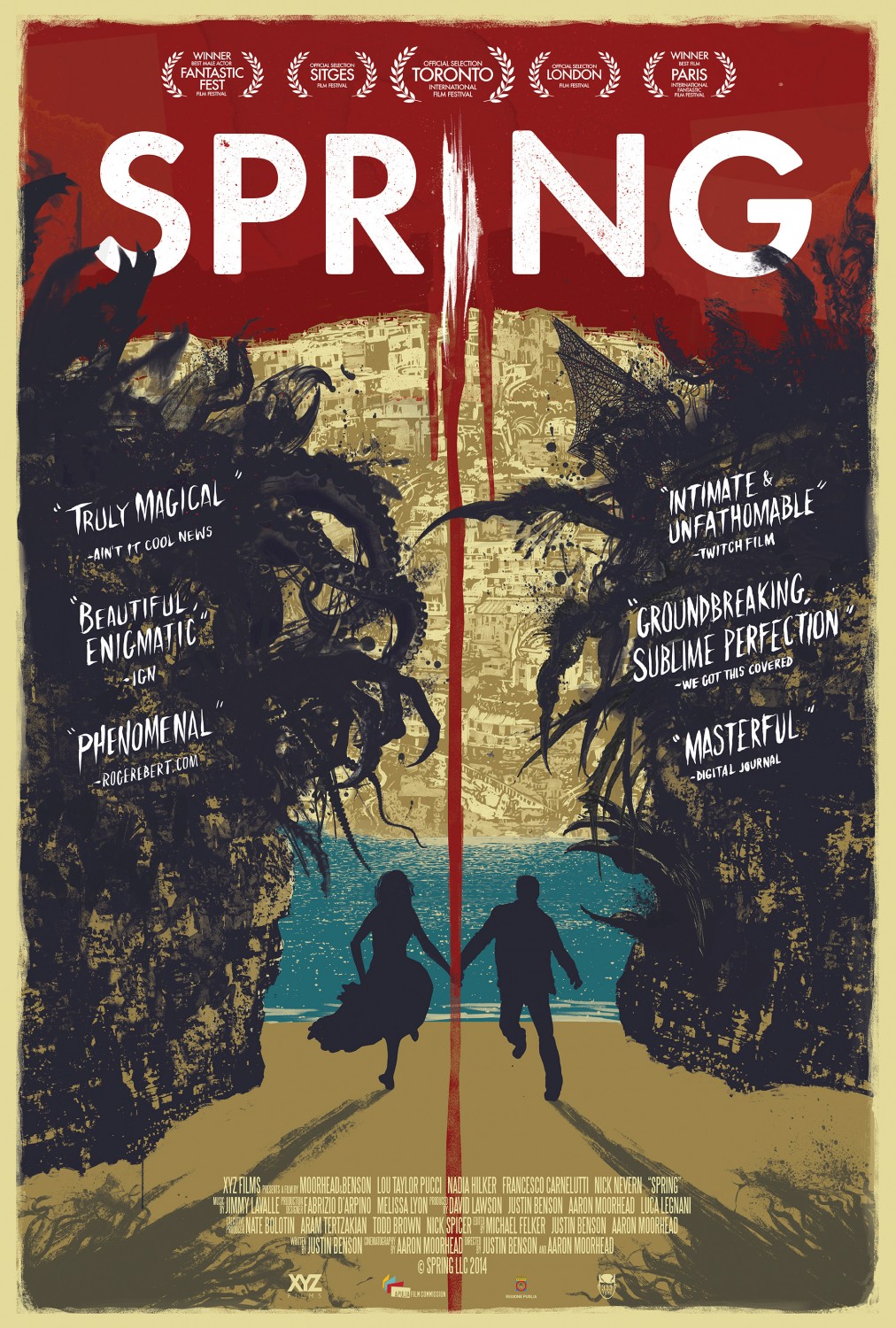 Spring es una película repleta de monstruos, situaciones extrañas, reflexiones y una historia de amor tan macabra que al mismo tiempo se muestra como la relación soñada para todos los corazones rotos y solitarios en busca de un amante como ningún otro.