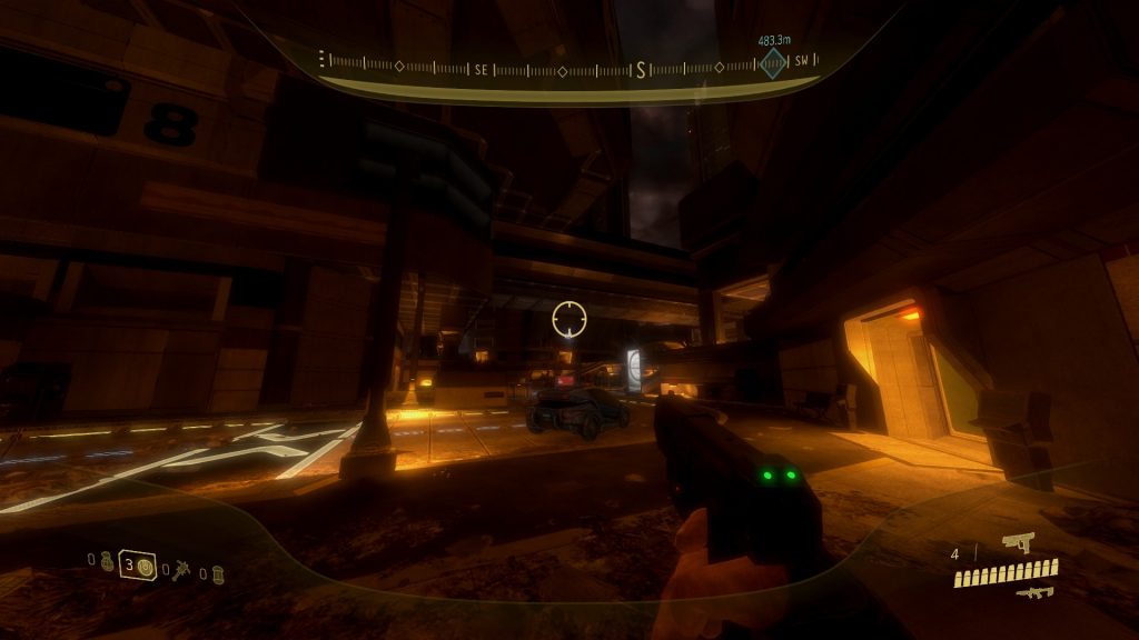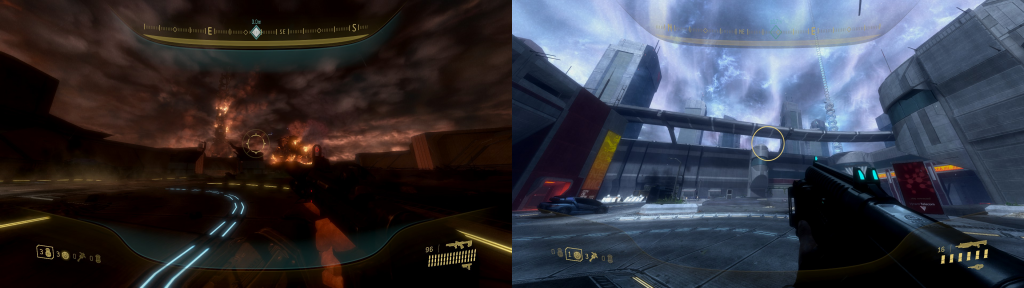 El juego, durante estos momentos, abandona los ritmos bélicos y se adentra a una atmósfera cercana al Noir. Recorremos la ciudad en las sombras, ocultos de las patrullas Covenant, para enmascarar los misterios que se forman en los escenarios; calles obstruidas por vehículos en llamas, interiores llenos de sangre humana y alienígena, callejones con publicidad y grafitis de supervivientes. Pero que, a pesar de todo, no deja de operar, pues aún hay algo de luz.
