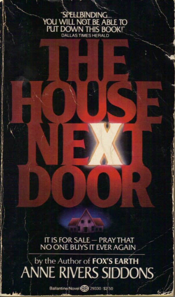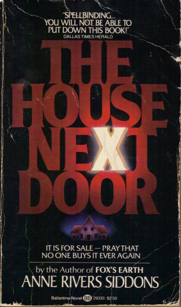 En La casa de al lado, Anne Rivers Siddons nos regala el mito de origen de una casa sintiente con un giro poco habitual: es una casa moderna, recién construida y de arquitectura moderna. La novela de Siddons se ubica en un vecindario de la clase pudiente en Altanta. Ahí viven Colquitt y Walter Kennedy, quienes un día descubren que alguien ha comprado el terreno de junto a su casa. En un principio, la pareja resiente la pérdida de privacidad que eso implica, pero se resignan y la casa que «parece ir creciendo desde el suelo» se gana el aprecio de Colquitt, quien nos narra la historia. El encanto dura poco. Los primeros dueños de la casa, los Harralson, la abandonan tras una tragedia. Lo mismo ocurre con los Sheehan y los Greene. La casa mantiene relaciones parasitarias terribles con sus habitantes e infecta incluso al arquitecto que la construyó. Colquitt decide hacer lo único que tiene sentido para ella: declarar la guerra contra la casa de al lado y evitar que alguien más la habite con funestas consecuencias.