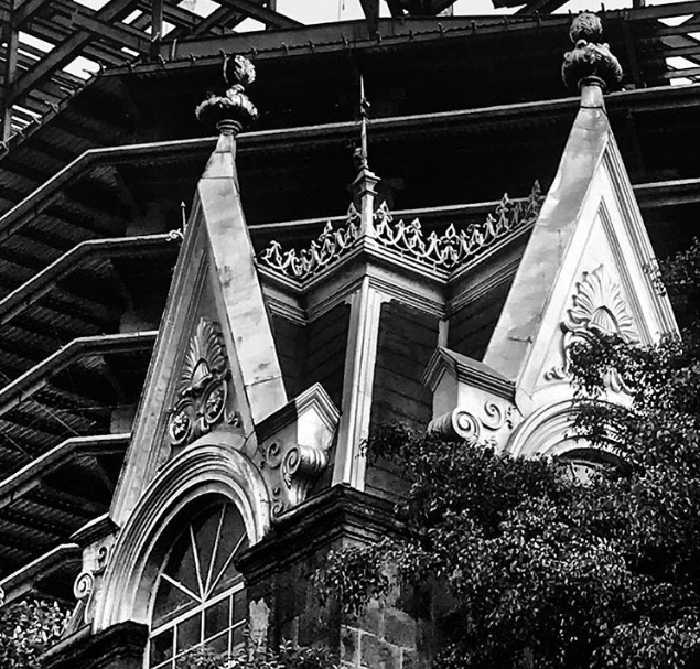 Deslicé mi palma por la herrería, repasando los contornos de una flor de lis. Bajé mi mano, la textura rugosa de la piedra me sorprendió. Los ojos de las ventanas del sótano me invitaban a perderme en ellos. ¿Qué escondería esa oscuridad? Descubrí MI casa (que no lo es, ni lo será nunca) de niña en uno de los tantos ires y venires por la ciudad con mis padres. Me sorprendió su largo techo de tejas azules, una mansarda muy habitual de las construcciones francesas. También el vitral que se alzaba sobre su escalera principal, la terraza donde me imaginaba a sus fantasmagóricos habitantes tomando el almuerzo. Desde entonces, vuelvo a menudo a ella. Es inevitable. Para mi imaginación de niña, esa construcción fue la materialización de aquellas mansiones de los libros que leía, así que me convencí de que estaba llena de fantasmas. Ahora, como adulta, su mezcla de estilos que apunta a lo victoriano no deja de sorprenderme (por mucho que papá me recuerde que debemos nuestro concepto de la mansión victoriana a una mezcla entre las restauraciones con aspectos góticos del arquitecto francés Eugène Viollet-le-Duc y una traducción de lo que a los estadounidenses les dio por llamar el “Victorian Style»). A menudo me doy una vuelta por el terreno triangular que contiene el trazo cuadrado de MI casa y sonrío. Observarla es un pequeño ritual para mí: parece estar viva, respira, me observa e incluso creo que nos caemos bien.